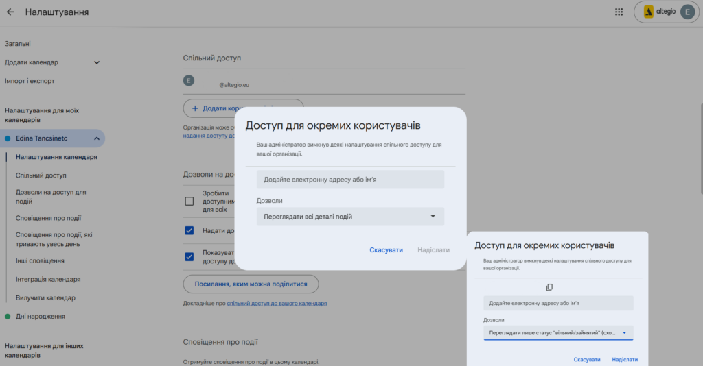 Google Календар підключається для конкретного співробітника або для кількох співробітників. Синхронізація здійснюється з Altegio у Google Календар, але не навпаки.