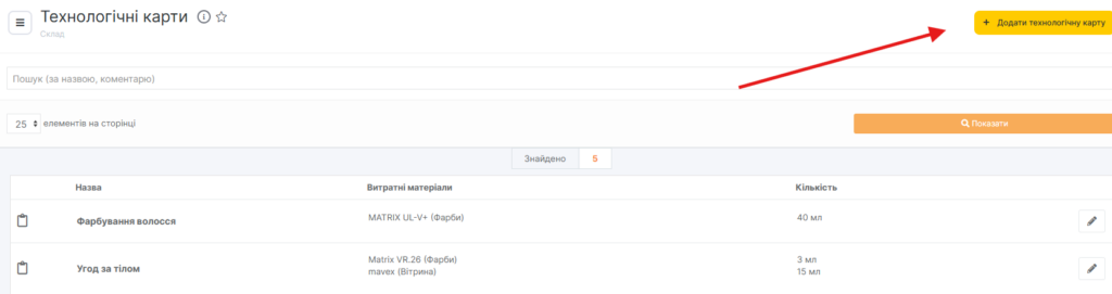 - Для початку роботи перейдіть до розділу Склад > Технологічні карти та натисніть кнопку Додати технологічну карту.