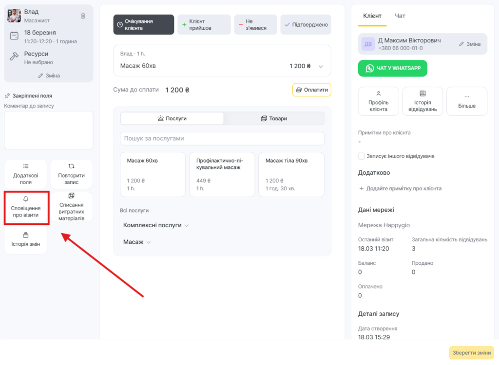 - Налаштувати індивідуального нагадування промайбутній записи по SMS і e-mail.