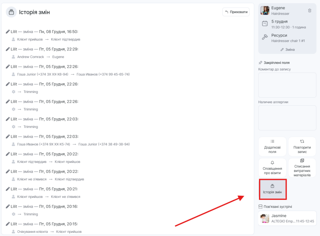 Перегляд всіх змін по візиту в деталях: хто, коли і які дані змінював.