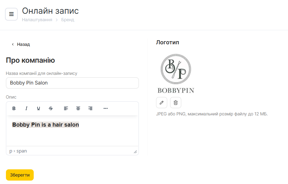 Щоб завантажити логотип, який відображатиметься у віджеті онлайн-запису: