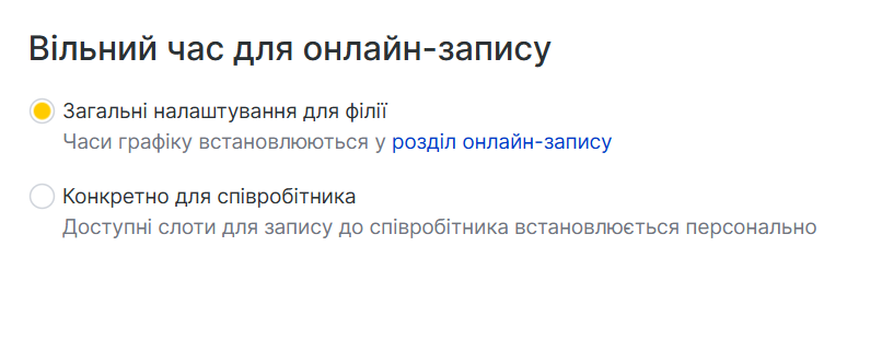 • Загальний для філії: використовуйте стандартний час онлайн-запису.