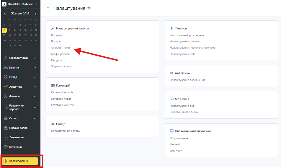У системі Altegio ви можете зручно керувати всіма налаштуваннями співробітників в одному розділі. Перейдіть у Налаштування → Налаштування запису → Співробітники, щоб переглянути та налаштувати профілі.