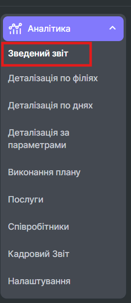 Щоб створити звіт, перейдіть до розділу Аналітика > Зведений звіт.