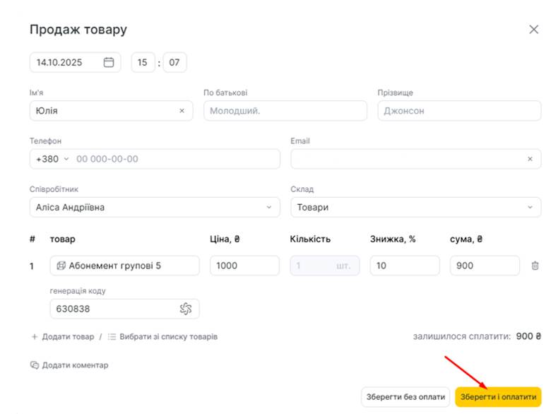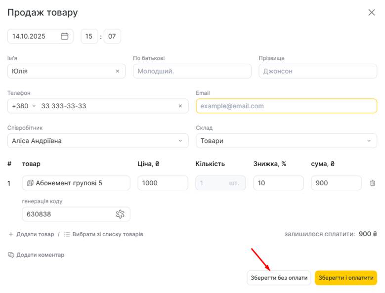 Після оновлення сторінки Продаж видалиться а Абонемент/Сертифікат зникне у Лояльності клієнта.