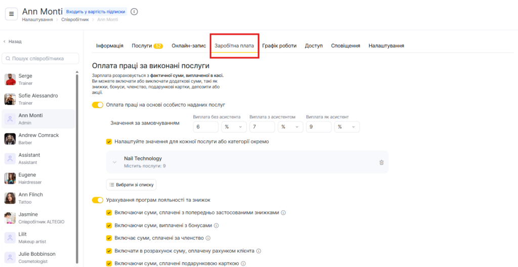 Додатково в Altegio можна налаштувати премії та штрафи.