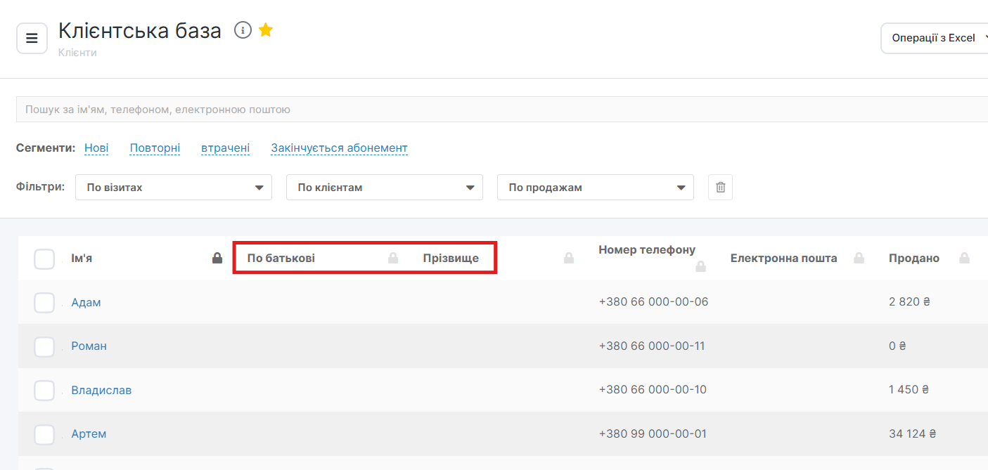Для вирішення цих питань в Altegio з’явилася можливість вказувати прізвище та по батькові клієнта. Тепер не потрібно створювати додаткові поля або вказувати повне ПІБ в імені, так як для прізвища та по батькові були створені окремі поля.