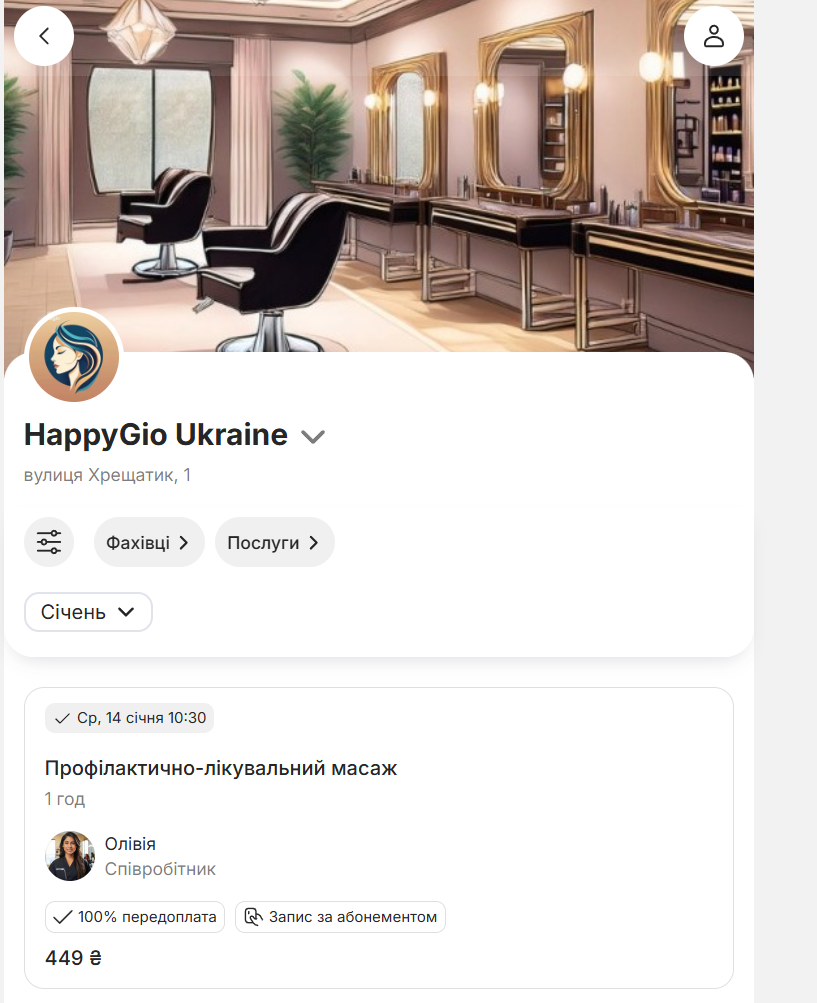 - Абонементом можна оплатити послугу, на яку здійснюється запис.
