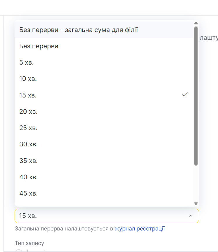 Також можна встановити загальну перерву для філії, якщо вона задана в налаштуваннях журналу.