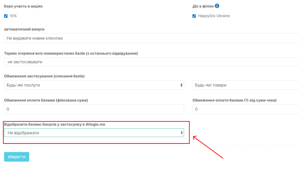 У майбутньому також планується додати відображення умов списання (згорання) балів.