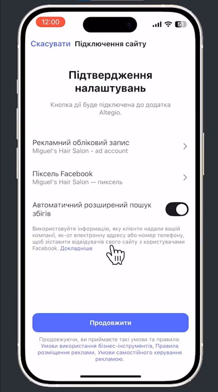 Дотримуючись цих кроків, ви зможете посилити свою присутність у соціальних мережах і спростити клієнтам процес бронювання безпосередньо через Instagram або Facebook. Якщо під час налаштування у вас виникнуть труднощі, зверніться до служби підтримки Altegio для отримання додаткової допомоги.
