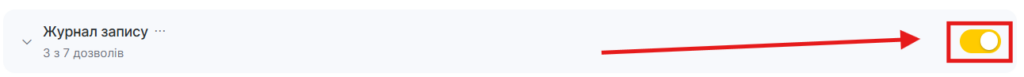 - Щоб надати або прибрати всі права до розділу, використовуйте перемикач.