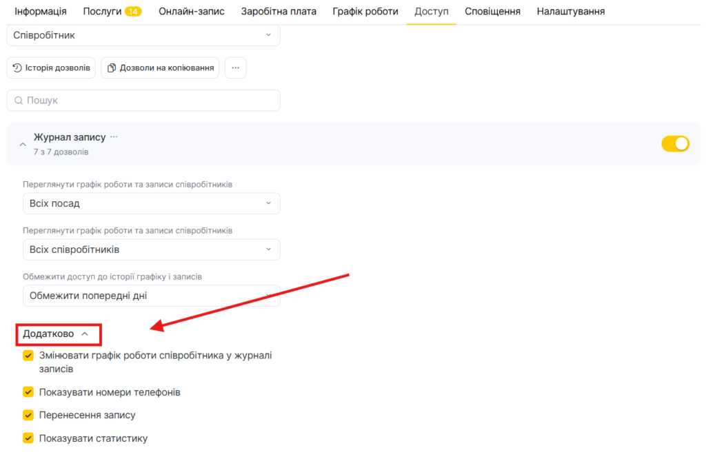 Після цього скопійовані права будуть додані до налаштувань співробітника.