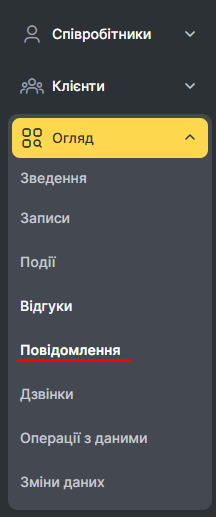 Для перевірки статусу надісланих повідомлень у лівому меню натисніть Огляд – Повідомлення.