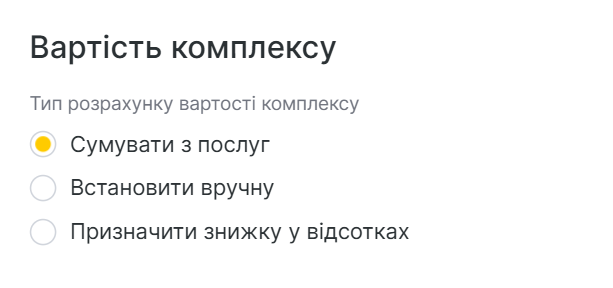 Якщо в комплекс додані послуги з нульовою ціною, можна обрати тільки ручний тип розрахунку вартості.