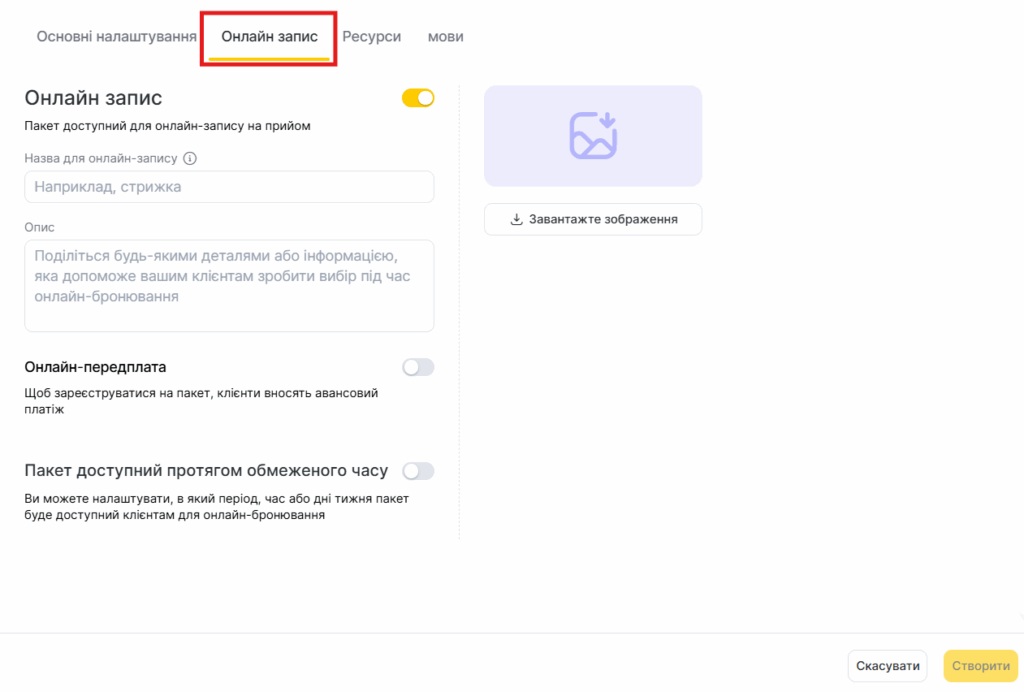 Онлайн-запис на комплекс (вкладка «Онлайн-запис»)#
