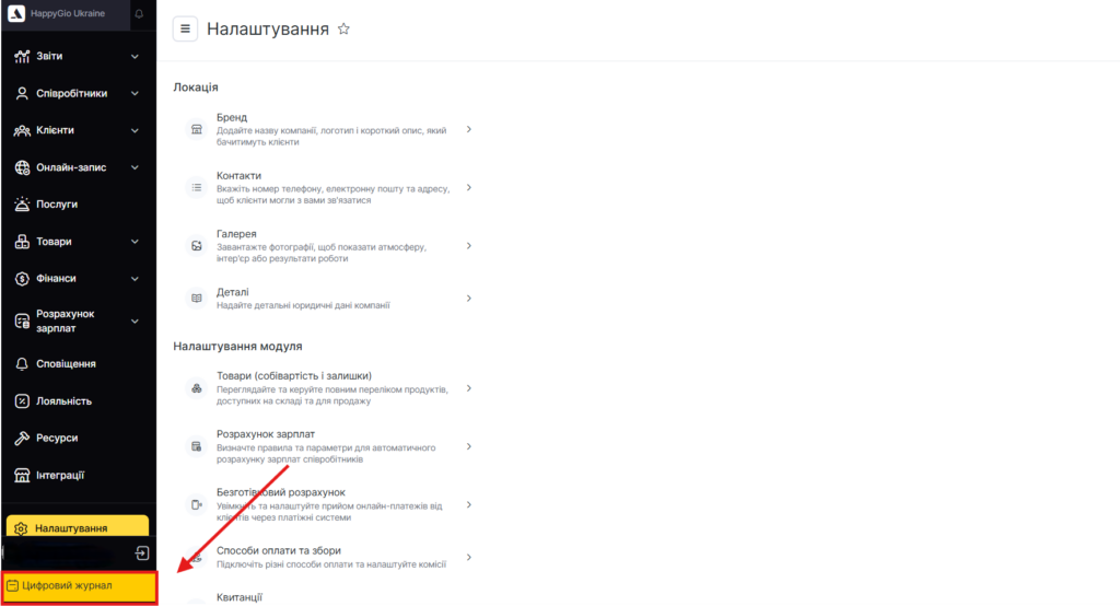 Доступні розділи можуть залежати від вашої ролі / прав доступу та тарифного плану. Якщо ви не бачите пункт меню, він може бути обмежений для вашого облікового запису.