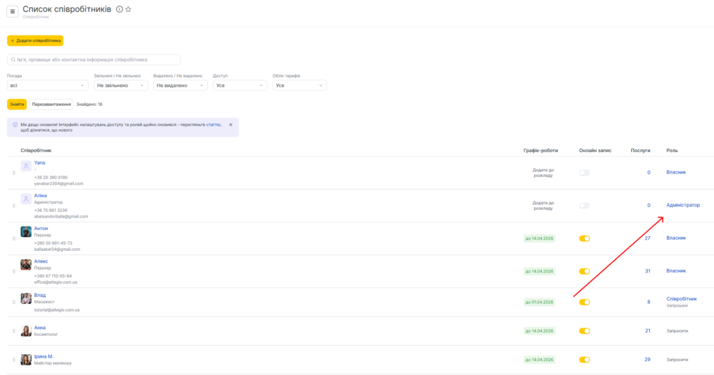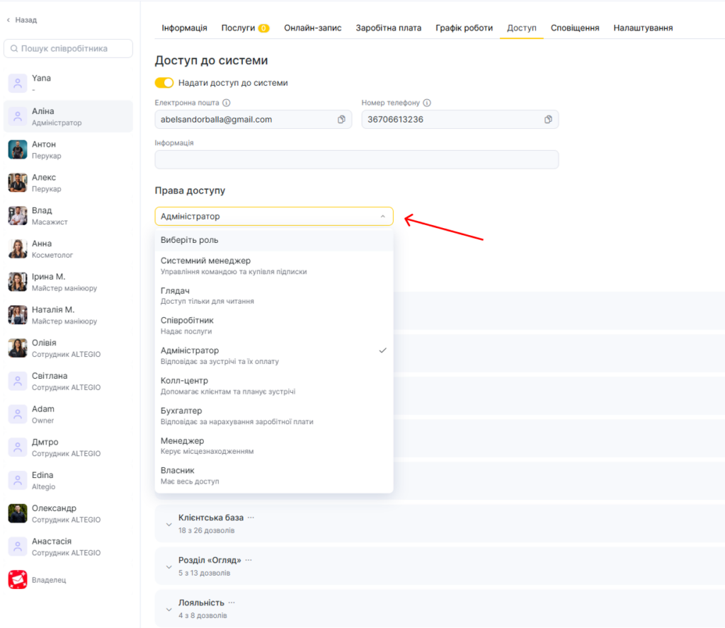 Altegio оновила принцип роботи доступів для співробітників.