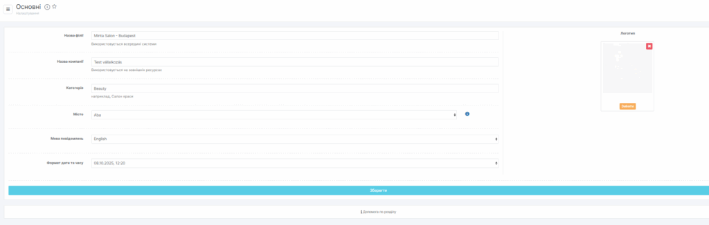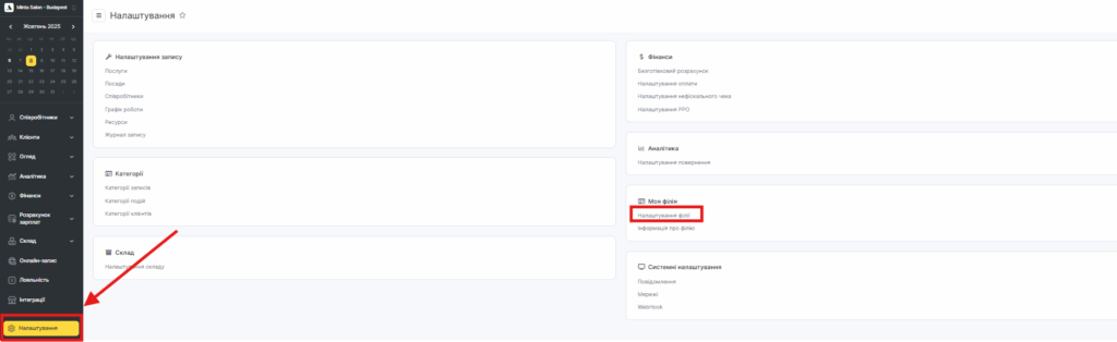Перейдіть у головному меню до розділу «Налаштування» > «Моя філія» > «Налаштування філії».