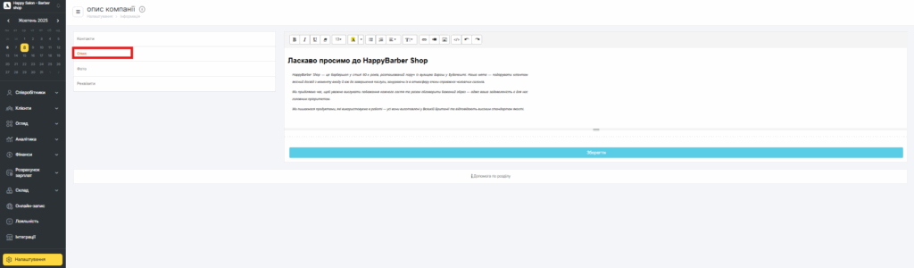 Опис відображається у віджеті онлайн-запису. Тут компанії розповідають про свої переваги, про те, що роблять і для кого, які проблеми клієнтів вирішують.