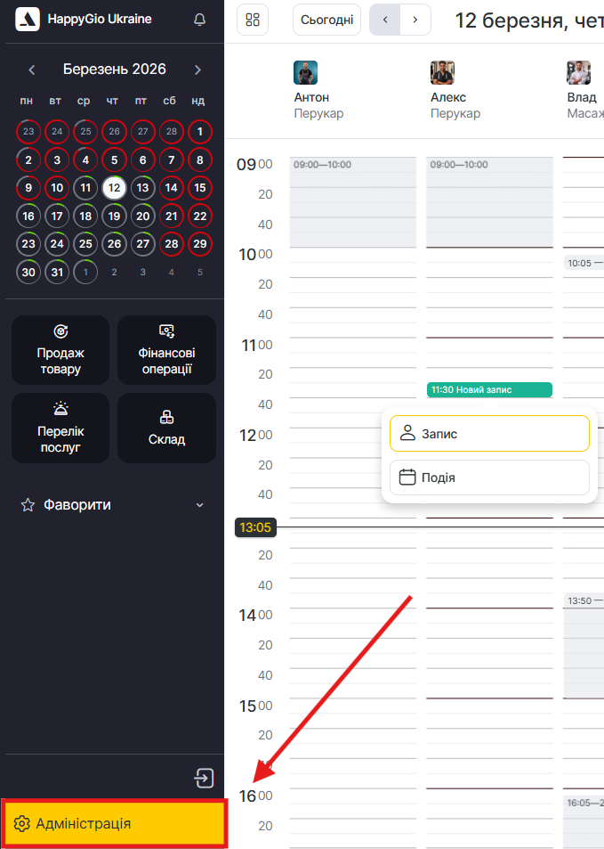 - Перейдіть в основному меню до розділу Налаштування > Налаштування запису > Послуги.