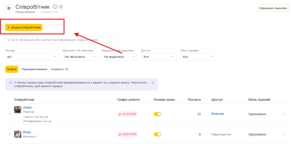 - У лівому верхньому куті натисніть кнопку Додати співробітника