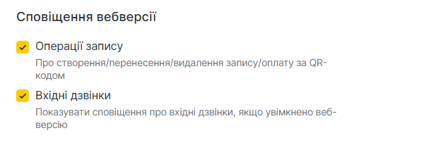 Сповіщення у вебверсії не пов’язані з каналами надсилання. Для їх відображення достатньо встановити відповідні прапорці.