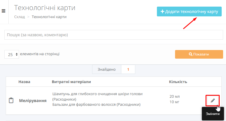 Для початку роботи перейдіть до розділу Склад – Технологічні карти та натисніть кнопку Додати технологічну карту.