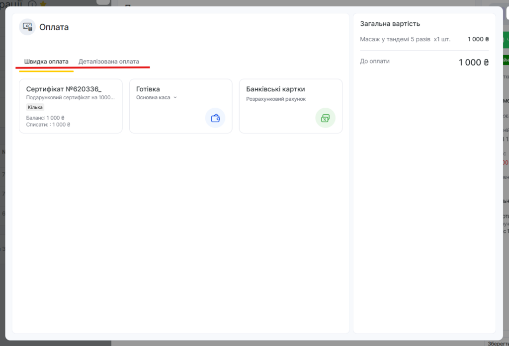 Для змішаної оплати перейдіть на вкладку Деталізована оплата.
