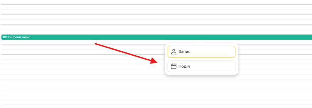 - Всі типи. При створенні запису з’являться дві кнопки: Запис (для індивідуального запису) і Подія (для групового запису).
