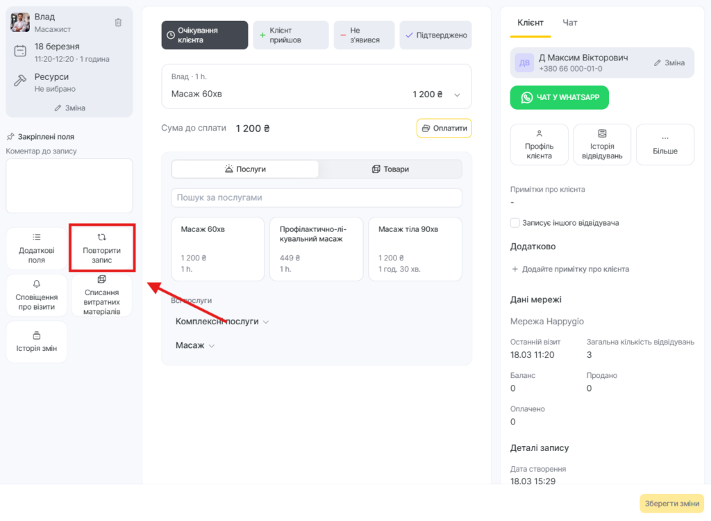 - Виберіть, як будуть повторюватися події: без записівабо з записами і клієнтами.