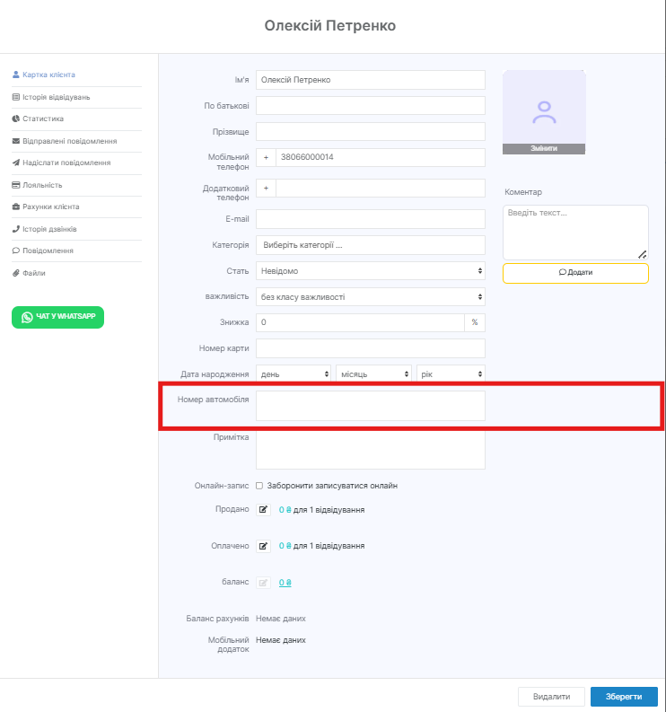 - Для клієнта: марка і номер автомобіля, ім’я дитини, діагноз пацієнта і т. п.