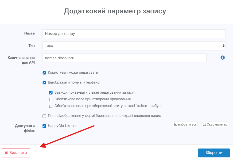 - Щоб поле відображалося у вікні запису / картці клієнта, встановіть позначку Відображати поле в інтерфейсі адміністратора.