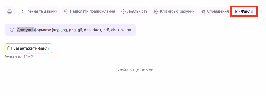 Ви можете завантажити файли клієнта та зберігати їх у Altegio, а також завантажувати або видаляти.