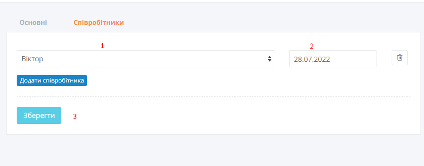 1. Виберіть співробітників зі списку, для цього натисніть кнопку Додати співробітника.