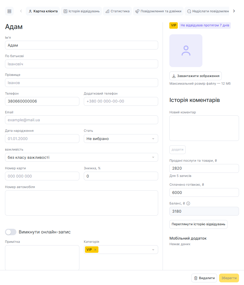 - У режимі Адміністрація у картці клієнта у розділі Клієнти > Клієнтська база (докладна інформація у статті Інформація у картці клієнта, пункт Надіслати повідомлення)