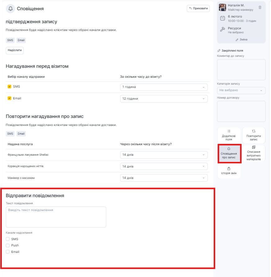 SMS-повідомлення з вікна запису #