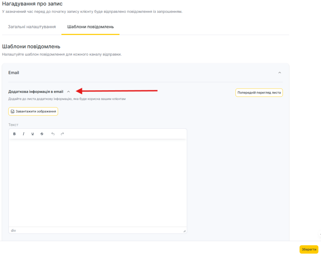 Щоб додати додатковий текст, перейдіть на вкладку Додаткова інформація в Email.