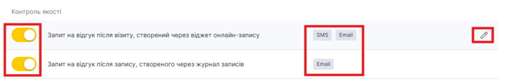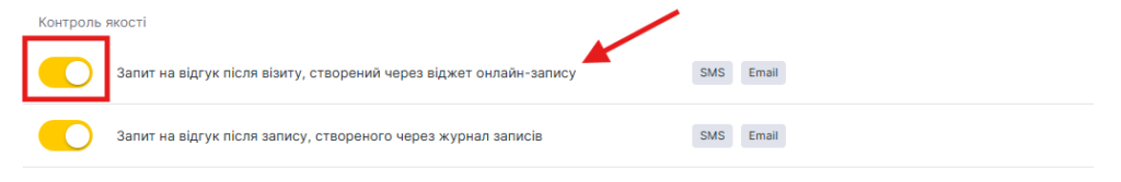 - Запит відгуку після візиту, запис на який створено через віджет онлайн-запису