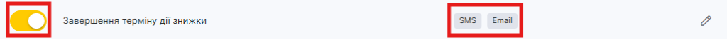 Повідомлення відправляється за вказану Вами кількість днів до того, як знижка для клієнта перестане діяти. Правила закінчення знижки налаштовується у розділі Клієнти > Програма лояльності.