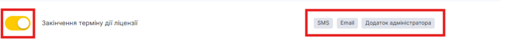 Автоматичне повідомлення, які сповіщає адміністратора та співробітника про закінчення дії ліцензії філії.