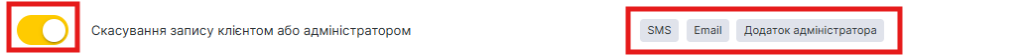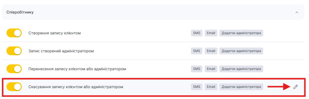 - У блоці Співробітнику виберіть тип Скасування запису клієнтом або адміністратором та натисніть на кнопку Змінити із зображенням олівця.