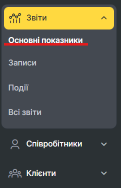 - Щоб створити звіт, перейдіть до розділу Звіти > Основні показники.