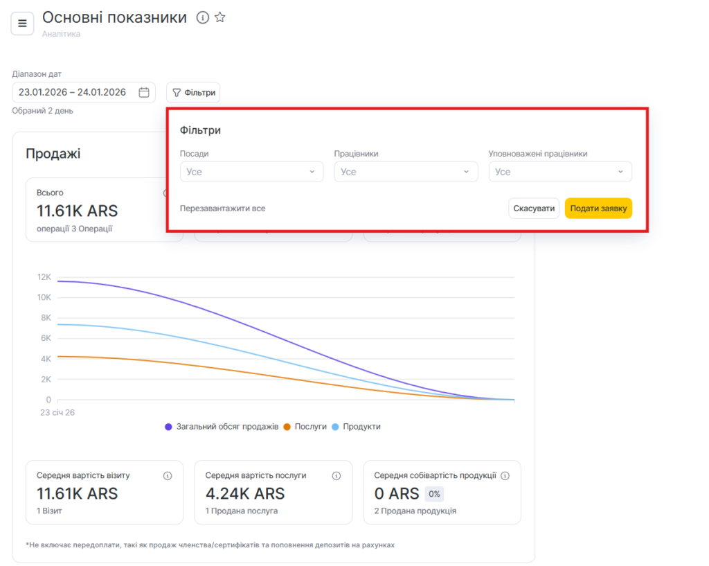 1. Аналітика формується лише за візитами зі статусом Клієнт прийшов за вибраний період..