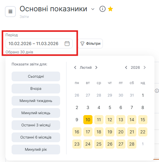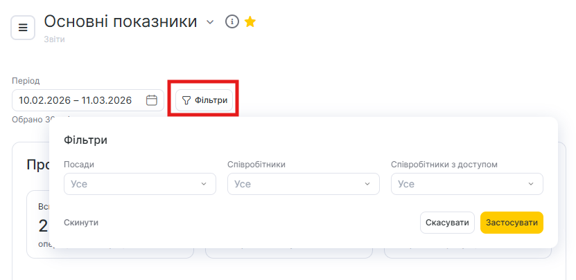 У розділі Звіти > Основні показники відображаються зведені аналітичні дані, згруповані у три блоки: