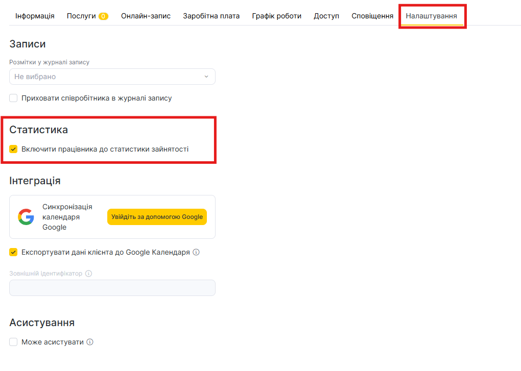 Щоб виключити таких співробітників зі статистики:Відкрийте налаштування співробітника. У полі Статистика > Ураховувати у заповненості зніміть позначку.