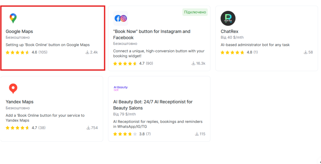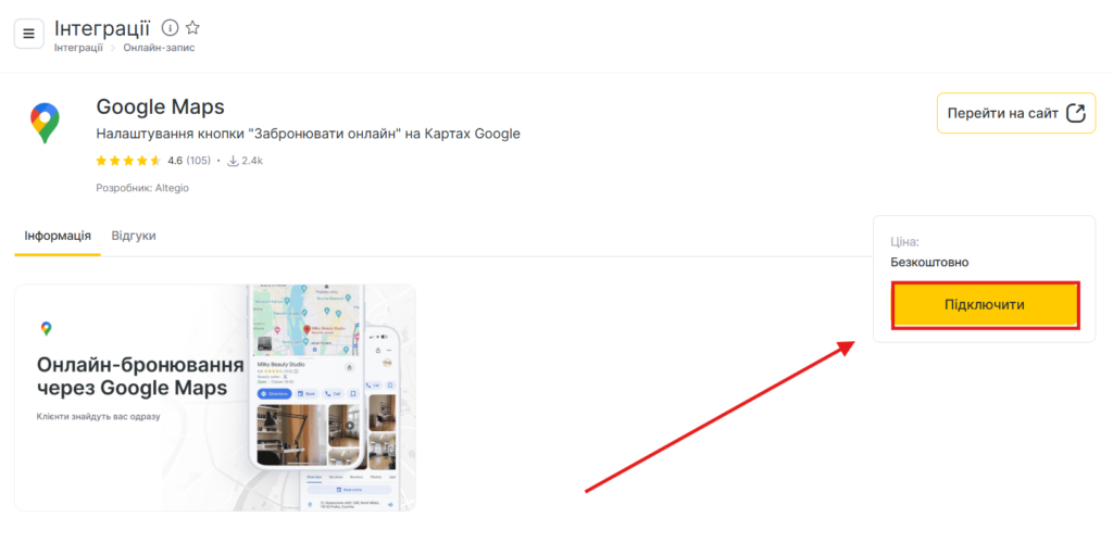 - У розділі Онлайн-запис виберіть інтеграцію з Google Maps.