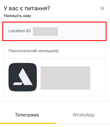 - У вікні, що відкриється, ви побачите Location ID. Це і є ID компанії.