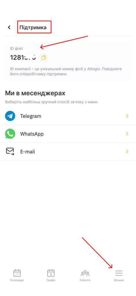 - ID вашої філії буде вказано зверху.