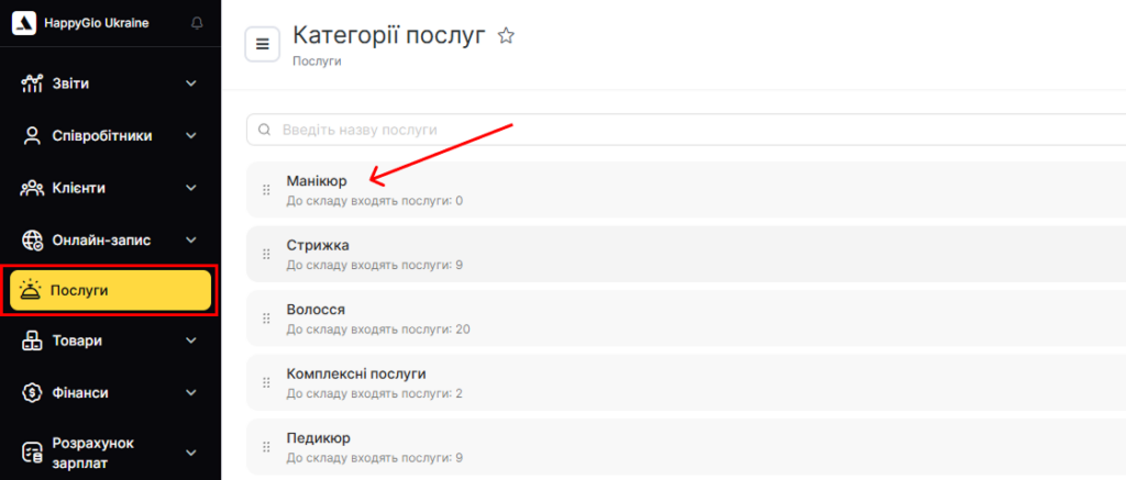 - Розгорніть категорію послуг і оберіть послугу, натиснувши на її назву.